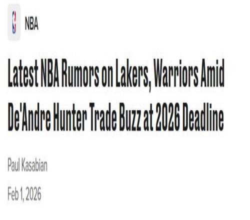 北京時間2月1日,隨著交易截止日臨近,洛杉磯湖人和金州勇士均與克利夫蘭騎士隊前鋒德安德烈-亨特產(chǎn)生交易傳聞,...