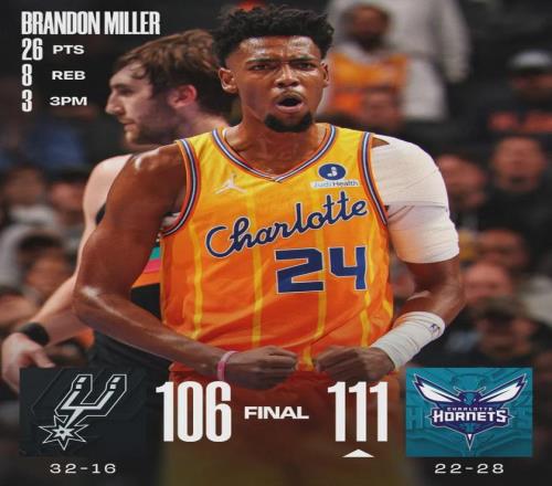 黃蜂榜眼布蘭登-米勒跟文班是同屆新秀,今天米勒風(fēng)頭蓋過(guò)文班:投籃21中7,三分9中3,罰球9中9,得到26分8板2助1斷1帽。得分全場(chǎng)最高,正負(fù)值+13全場(chǎng)第二高。跟文班對(duì)位的迪亞巴特,拿到12分10板6助2帽,正負(fù)值+19全場(chǎng)最高。
