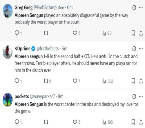 但火箭球迷們紛紛朝著申京開(kāi)炮:1.比賽進(jìn)入加時(shí)申京就不該登場(chǎng),下一場(chǎng)比賽讓他坐在板凳席吧。