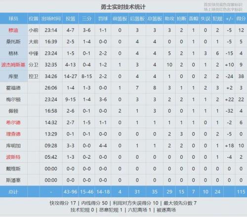 勇士完?。?kù)里38+4首發(fā)最低,克萊6中2庫(kù)明加傷退,格林5中1惡犯