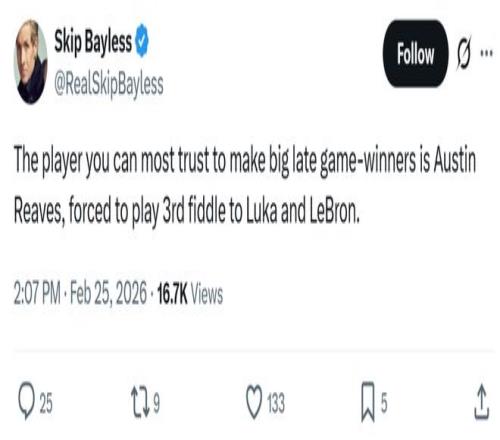 湖人名宿沃西也給出相同說法:“如果東契奇投射狀態(tài)不佳,或許湖人可以考慮讓里夫斯投絕殺球?!?/p>