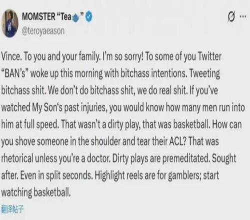 對于這個嚴(yán)重的后果,不少球迷都在社交媒體上批評伊森。而伊森母親隨后也在社媒發(fā)聲道歉,但表示自己兒子只是正常的籃球動作,并非故意傷人。