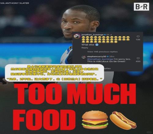之前有媒體透露庫明加的家屬拿走了勇士的太多食物,庫里對此直接辟謠:“對不起兄弟,太離譜了,去成為偉大吧!”