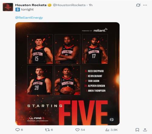 火箭:謝潑德、阿門、伊森、杜蘭特、申京;