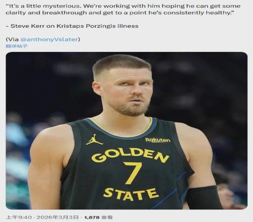 目前鉑金已連續(xù)休戰(zhàn)五場(chǎng)比賽且仍處于無限期休戰(zhàn)狀態(tài),根據(jù)勇士主帥科爾的說法,球隊(duì)醫(yī)療團(tuán)隊(duì)正與前者合作試圖弄清他的神秘病情。