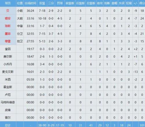 湖人主場110-101擊敗鵜鶘,目前以37勝24負(fù)繼續(xù)位列西部第六。鵜鶘數(shù)據(jù)如下:湖人數(shù)據(jù)如下:肯納德繼續(xù)在外線穩(wěn)定...