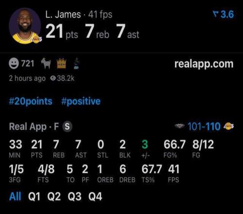 此役之前,詹姆斯常規(guī)賽生涯總進(jìn)球數(shù)為15827記,歷史第一的賈巴爾為15837記,最終詹姆斯本場(chǎng)12中8得到21分7籃板7助攻,距離追平賈巴爾只差2球,登頂一刻大概率將在下一場(chǎng)對(duì)陣掘金的比賽上演。