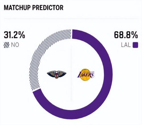 賽前,美媒ESPN對本場比賽進(jìn)行了勝率預(yù)測,湖人隊勝率高達(dá)68.8% ,鵜鶘勝率則僅有31.2% ,對比非常明顯 。