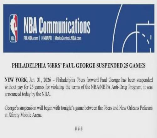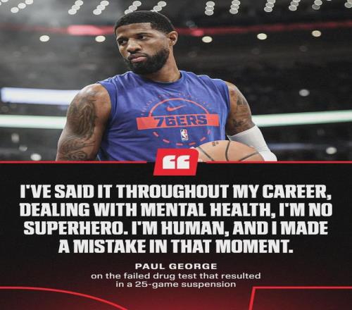 差不多兩個月前,喬治被NBA官方禁賽25場,理由是他違反了NBA相關(guān)的禁藥政策。