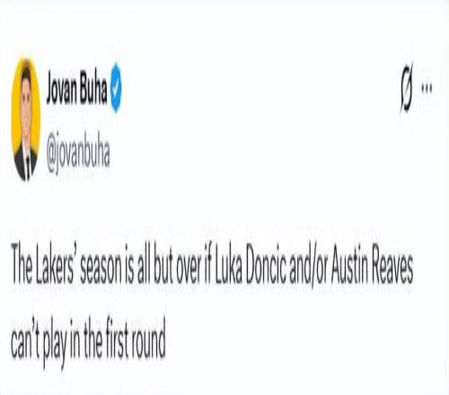 湖人隊記Buha在社媒上表示,如果東契奇和 / 或里夫斯無法出戰(zhàn)首輪,湖人這個賽季基本就提前結(jié)束了。大家怎么看?歡迎留言發(fā)表看法。