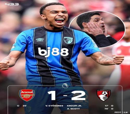英超第32輪,阿森納主場1-2伯恩茅斯,四連勝終結(jié),先賽兩場積70分以9分優(yōu)勢領(lǐng)跑。本懷特漏人失誤,克魯皮先拔頭籌,加布里埃爾造點(diǎn),哲凱賴什點(diǎn)射扳平+越位進(jìn)球被吹,斯科特建功。