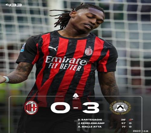 意甲第32輪,AC米蘭客場0-3不敵烏迪內(nèi)斯,遭遇兩連敗,先賽情況下積63分依舊排在第三。阿塔小角度爆射造成巴爾泰薩吉烏龍,??死湛奉^球擴(kuò)大比分,薩勒馬科爾斯遠(yuǎn)射被撲后擊中橫梁,阿塔鎖定勝局。