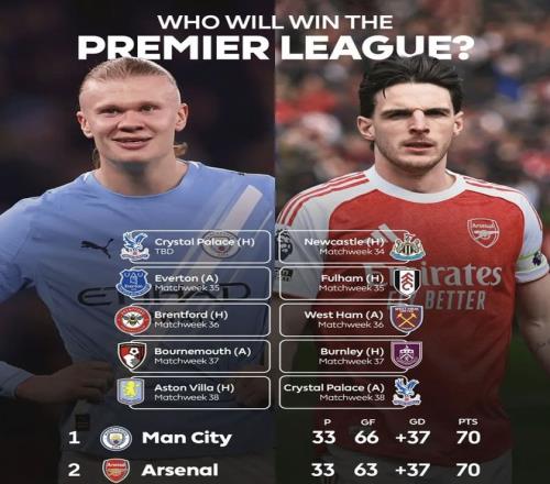 在英超積分榜上,目前曼城、阿森納同積70分,凈勝球均為27個,曼城的進球數(shù)比阿森納多3個,曼城反超阿森納來到英超第1位。在本賽季剩余的英超比賽中,曼城的對手包括水晶宮、埃弗頓、布倫特福德、伯恩茅斯以及維拉,而阿森納要踢紐卡、富勒姆、西漢姆聯(lián)、伯恩利以及水晶宮。曼城還有足總杯半決賽任務(wù),對手是英冠的南安普頓,槍手要在歐冠半決賽中跟馬競進行兩回合消耗戰(zhàn)。