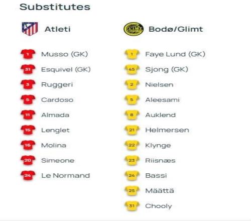 北京時(shí)間1月29日04:00,歐冠 聯(lián)賽階段第8輪,馬德里競(jìng)技主場(chǎng)迎戰(zhàn)博德閃耀,賽前雙方球隊(duì)首發(fā)名單公布如下:馬德里競(jìng)...