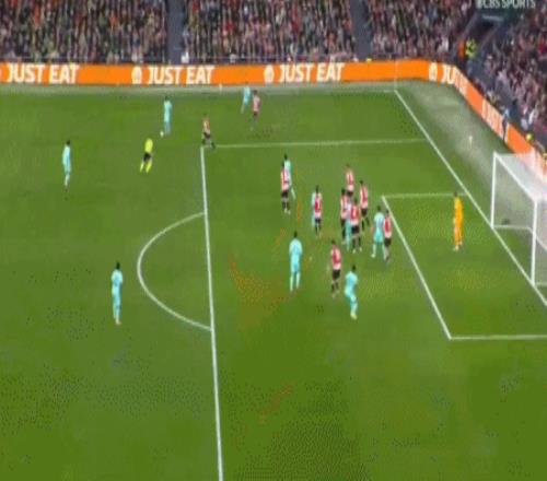 第3分鐘,桑切特突入禁區(qū)低射破門,畢爾巴鄂競技1-0