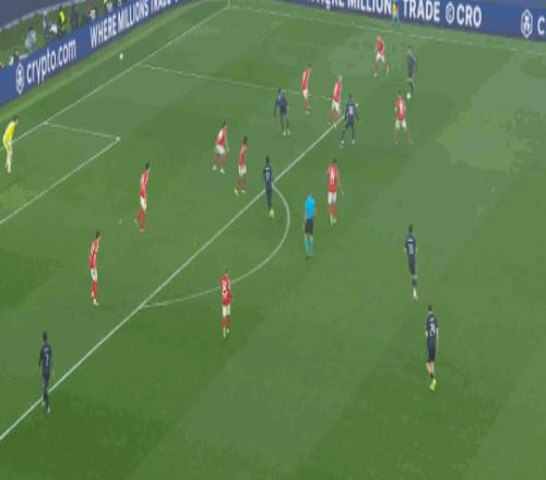 第47分鐘,姆巴佩傳中,維尼修斯頭球偏出