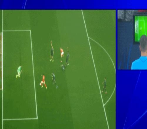 傷停補時階段,楚阿梅尼角球防守時拉拽奧塔門迪,后者應(yīng)聲倒地,裁判判罰點球。