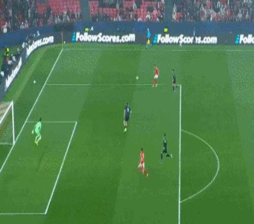 第36分鐘,勞爾-阿森西奧后場腳下打滑送禮,帕夫利季斯右路傳中,謝爾德魯普近距離沖頂建功,本菲卡迅速扳平,1-1!