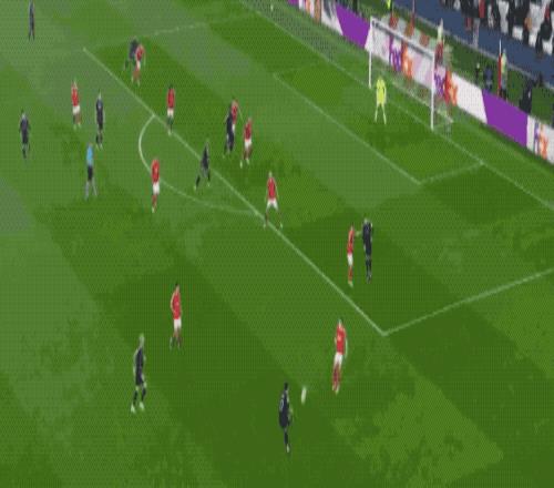第58分鐘,居萊爾冷靜晃過(guò)防守后將球傳到中路,本菲卡點(diǎn)球點(diǎn)附近完全漏人,姆巴佩梅開(kāi)二度。