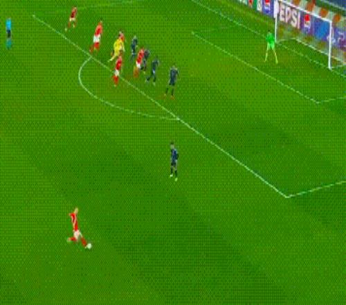 比賽開始后,強陣出擊的皇馬,依靠球員的個人能力,率先取得進球。第30分鐘,姆巴佩接應隊友的傳中,頭球沖頂破門,皇馬1-0領先。只要保持這個結果,皇馬就將鎖定前八,而本菲卡則飲恨出局。