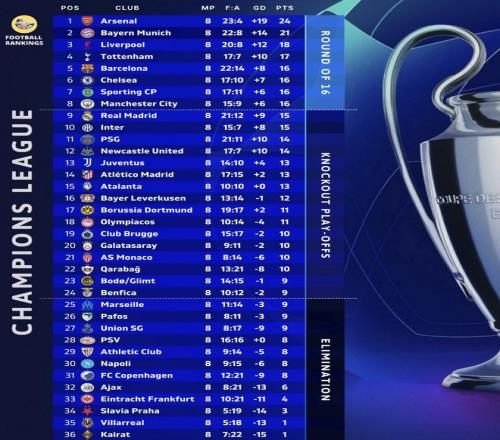 歐冠最終積分榜上,8輪15分的皇馬位居16分的曼城之后,排名第9位,無緣直通淘汰賽,本菲卡排名第24,驚險晉級附加賽。姆巴佩本賽季歐冠為皇馬出戰(zhàn)7場比賽攻入13球,排名射手榜第1位,在擁有歐冠最佳射手的情況下,皇馬卻要去踢附加賽。