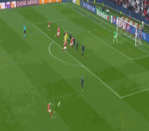 傷停補時只有5分鐘時間,比賽已經(jīng)踢到第97分鐘。壓哨時刻,本菲卡獲得任意球,門將特魯賓殺入禁區(qū),接到隊友奧爾斯內(nèi)斯的傳中,頭球攻門得手,本菲卡4-2殺死懸念。