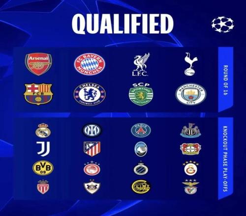 跌入淘汰賽附加賽的球隊則構成了豪華陣容。其中,種子球隊(第9至16名)包括:皇家馬德里、國際米蘭、巴黎圣日耳曼、紐卡斯爾聯(lián)、尤文圖斯、馬德里競技、亞特蘭大、勒沃庫森。皇馬在末輪前高居第三,一場失利讓他們直接跌至第九,不得不為16強名額再戰(zhàn)一輪。