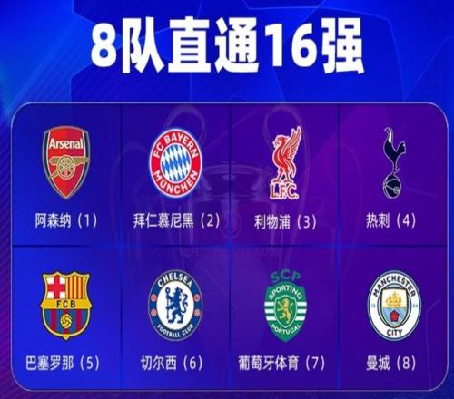 而前8的球隊中,英超斷層式領先,占據5個席位。另外還包括1支德甲的拜仁,1支西甲的巴薩和1支葡超的葡萄牙體育。