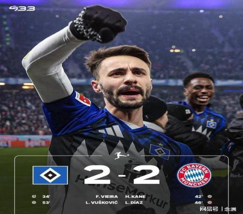 德甲第20輪,拜仁客場(chǎng)2-2戰(zhàn)平漢堡,兩輪不勝,先賽仍9分領(lǐng)跑?;紫4罅Z門中橫梁,隨后基米希送點(diǎn),法比奧-維埃拉點(diǎn)射破門,基米希將功補(bǔ)過(guò)助攻凱恩扳平,格納布里破門被吹,奧利塞助攻迪亞斯破門,武什科維奇頭球破門扳平。