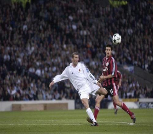 齊達(dá)內(nèi):這張照片拍的是2002年5月15日,在格拉斯哥舉行的歐冠決賽對(duì)陣?yán)瘴謳?kù)森時(shí)我打進(jìn)的那粒進(jìn)球(比分2-1)。那一刻仿佛時(shí)間靜止,是一種懸停在空中的巔峰瞬間。正是這個(gè)進(jìn)球,讓我的榮譽(yù)版圖得以完整。