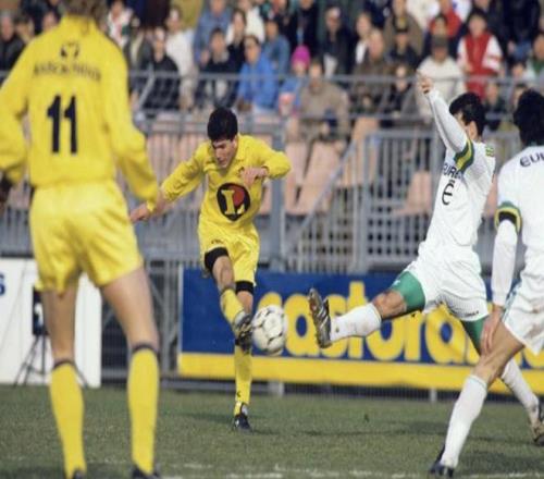齊達(dá)內(nèi):這是在戛納,那時(shí)候我還有頭發(fā)(笑)。我在法甲主場(chǎng)對(duì)陣南特的第一粒進(jìn)球(1991年2月10日,2-1)。我在法甲的第一場(chǎng)比賽也是對(duì)南特,不過(guò)是在客場(chǎng)拉博若瓦球場(chǎng)(1989年5月20日,1-1)。我在比賽還剩十分鐘時(shí)替補(bǔ)登場(chǎng)。那時(shí)候每隊(duì)只有兩名替補(bǔ)。我和博羅-普里莫拉茨一起坐在替補(bǔ)席上。是讓-費(fèi)爾南德斯派我上場(chǎng)的。