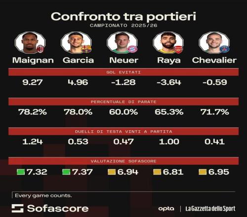 25/26賽季,米蘭一門邁尼昂狀態(tài)明顯復(fù)蘇,多次在關(guān)鍵比賽中力挽狂瀾。據(jù)專業(yè)機(jī)構(gòu)統(tǒng)計(jì),法國國門的實(shí)際失球數(shù)要比...