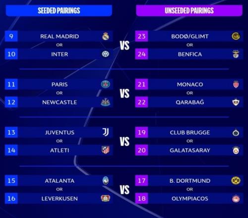 此外,國(guó)米/皇馬VS博德閃耀/本菲卡的附加賽兩支勝者,將再次與葡萄牙體育和曼城進(jìn)行16強(qiáng)對(duì)陣抽簽。