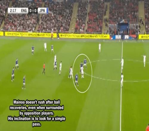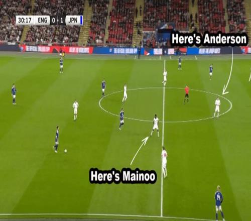 當時科爾·帕爾默前場丟球,安德森失去了重心,未能及時鏟球阻止對方,而梅諾一如既往沒有跟人。日本打出反擊,并最終破門。