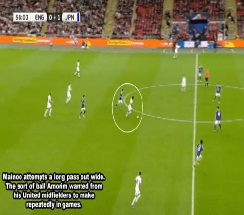 對日本隊的比賽,梅諾有幾次試圖大范圍轉(zhuǎn)移,然而,他的長傳球精度不夠,遠沒有達到曼聯(lián)隊友卡塞米羅和B費的水平。