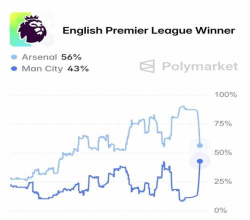 英超變天!阿森納奪冠概率跌至56%遭曼城逼近近4成可能賽季0冠