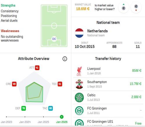 最公允的結(jié)論或許是:范戴克的身體可能已不在絕對(duì)巔峰,但他仍然是我們最穩(wěn)定的球員之一,也是我們未曾進(jìn)一步滑落的主要原因。