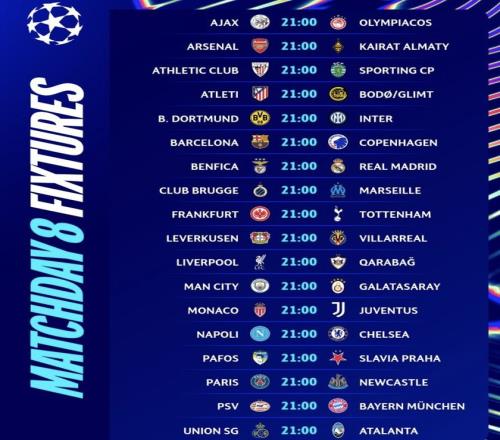 在第8輪的比賽中,只有阿森納主場(chǎng)對(duì)陣阿拉木圖凱拉特的比賽與出線席位之爭(zhēng)沒(méi)有關(guān)系,其余比賽都將決定著前8的產(chǎn)生。阿森納領(lǐng)先拜仁3分,比拜仁多5個(gè)凈勝球,基本鎖定榜首。拜仁將客戰(zhàn)埃因霍溫,只要取勝就將排名前2,從而在決賽前將避開阿森納。