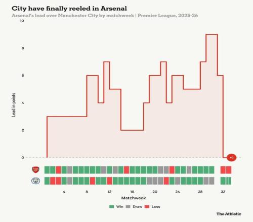 彼時曼城僅落后榜首2分,但阿森納的表現(xiàn)顯然更加穩(wěn)健。