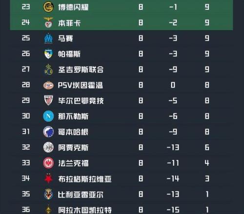 末輪開打前,有多支球隊(duì)都是13分,哪怕一粒進(jìn)球都能讓形勢(shì)發(fā)生逆轉(zhuǎn);巴塞羅那、切爾西、葡萄牙體育和曼城這四支身處13分大軍的球隊(duì)都在末輪取勝,并成功擠進(jìn)前八,直接晉級(jí)16強(qiáng)。而翻車卻是銀河戰(zhàn)艦皇馬,縱使姆巴佩拼盡全力完成梅開二度,但皇馬還是在客場(chǎng)2:4輸給了本菲卡,排名掉到了第9;只能去參加附加賽。值得一提的是,本菲卡憑借一個(gè)凈勝球的優(yōu)勢(shì)從而獲得了第24位,壓線晉級(jí)附加賽;而且2隊(duì)還很可能繼續(xù)在附加賽再次相遇。