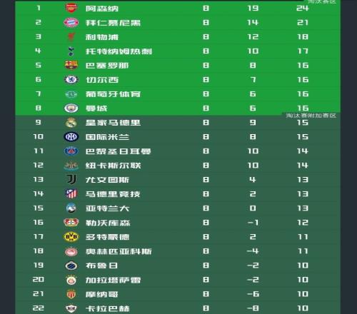 歐冠最后兩輪積分榜前八對(duì)比:巴薩升至第五,皇馬跌出前八