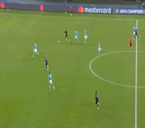 在第二個(gè)進(jìn)球時(shí),我看到了防守球員。我做決定比較晚,因?yàn)槲以诘人x擇,是上來(lái)逼搶我,還是去盯防其他人。他站在中間,所以我選擇了射門,最終進(jìn)球了。