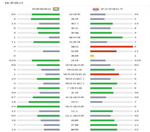 第87分鐘,阿洛巴禁區(qū)插上推射遠角破門,維拉3-2反超薩爾茨堡紅牛