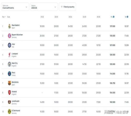 當(dāng)然了,歐洲三大杯也有權(quán)重之分,歐冠的獎(jiǎng)勵(lì)權(quán)重,比歐聯(lián)杯和歐協(xié)聯(lián)都會(huì)高一些。同一個(gè)聯(lián)賽所有球隊(duì)的積分合計(jì),再除以總參賽球隊(duì)數(shù)量,就得出該聯(lián)賽的積分。