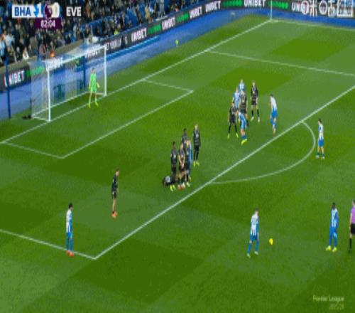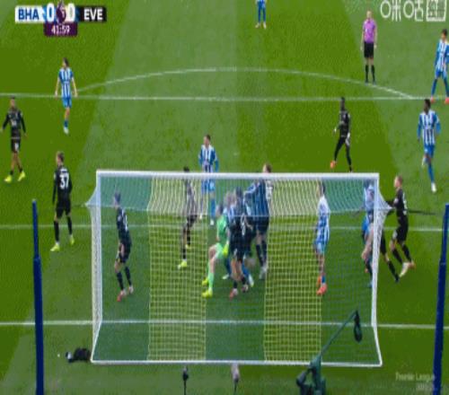 第41分鐘,布萊頓角球機(jī)會,被判侵犯門將