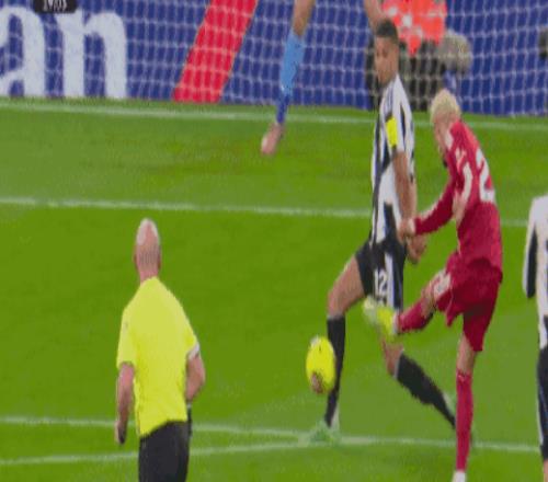 第12分鐘,戈登放鏟阿利森被主裁判出示黃牌警告。