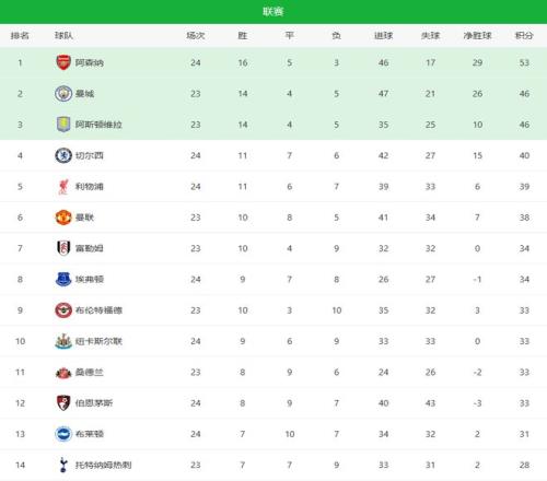 北京時間2月1日凌晨,英超第24輪,領(lǐng)頭羊阿森納4-0大勝升班馬利茲聯(lián),在先賽一場的情況下,領(lǐng)先曼城與維拉7分;切爾西主場3-2逆轉(zhuǎn)西漢姆聯(lián),豪取各項賽事5連勝,一躍來到了積分榜第四;紅軍利物浦在安菲爾德4-1逆轉(zhuǎn)紐卡斯爾,反超紅魔曼聯(lián)暫居第五,本輪尚未開打的紅魔則掉到了第六,4到6名的球隊僅差2分,聯(lián)賽爭四大業(yè)徹底是亂套啦!