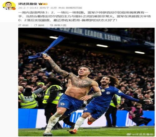 恩佐的絕殺,是其藍(lán)軍生涯150場(chǎng)里程碑的璀璨注腳(27球27助),更是這種精神在新時(shí)代的傳承。從0-2到3-2,球隊(duì)展現(xiàn)出的不是僥幸,而是一種“要么贏,要么死”的信念。正如著名評(píng)論員詹俊所言:“藍(lán)軍少帥羅塞尼爾的臨場(chǎng)調(diào)度真有一手。” 而加里·內(nèi)維爾則感慨:“切爾西總能在同一場(chǎng)比賽中展現(xiàn)出截然不同的面貌……在關(guān)鍵時(shí)刻卻突然爆發(fā),成為一股強(qiáng)大的力量?!?這種“變身”能力,正是昔日那支切爾西最特色的。