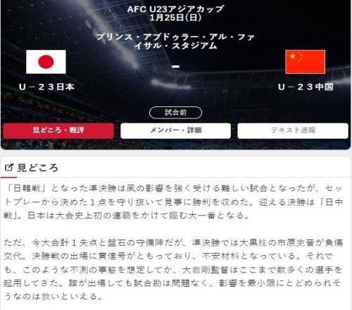 在上屆U23亞洲杯中,中國隊曾與日本隊交手,那場比賽日本隊在開場17分鐘就被罰下一人,令人遺憾的是,整場多打一人的中國隊最終以0-1輸?shù)袅吮荣?,兩年后,兩隊再次在U23亞洲杯中相遇,不同的是,這次是在決賽舞臺上,這種歷史背景讓本次決賽增添了更多故事性,對中國隊而言,這不僅是爭奪冠軍的機(jī)會,也是彌補(bǔ)上次遺憾的良機(jī),對日本隊來說,他們正為賽事歷史上首次衛(wèi)冕而戰(zhàn)