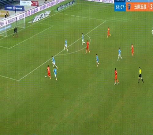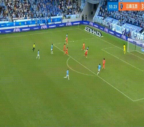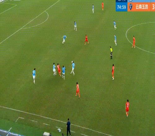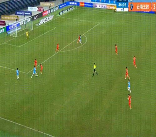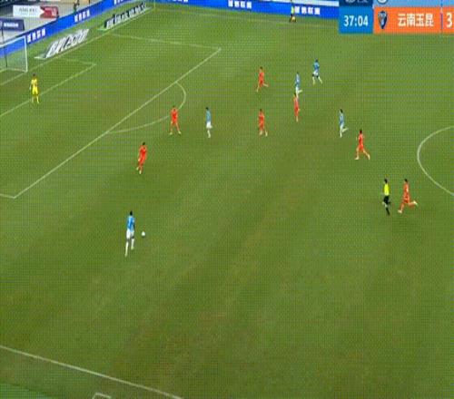 第34分鐘,約尼查大腳長傳到禁區(qū),奧斯卡前插頭球攻門頂進,云南玉昆改寫比分到3-0。